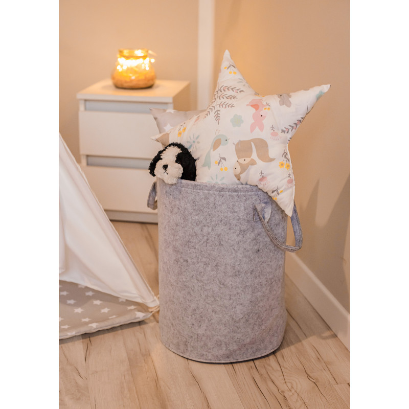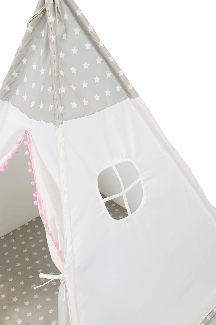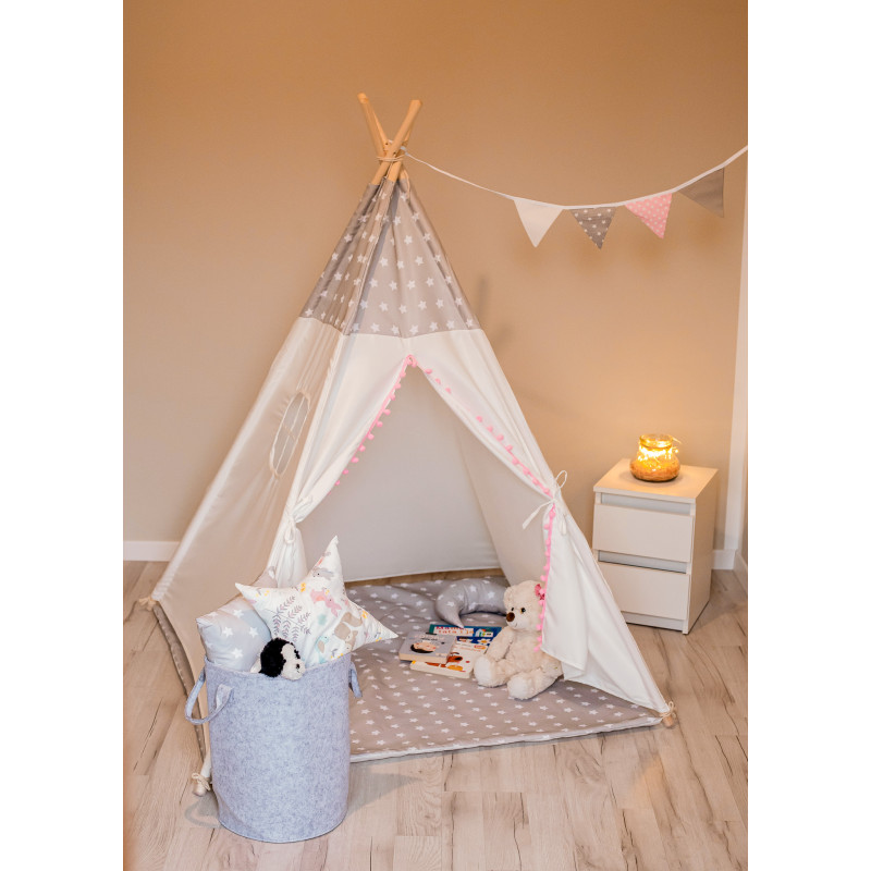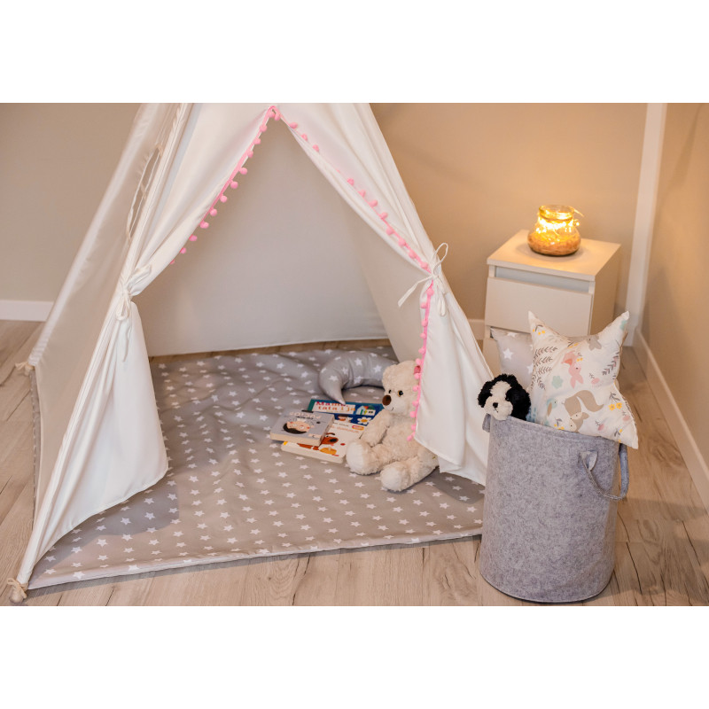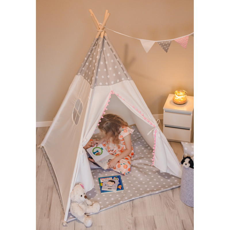 Stilinga, išskirtinio dizaino vaikiška tipi palapinė (vigvamas) – vieta vaizduotės kuriamiems žaidimams, ramiam knygelių skaitymui ar poilsiui. Vaikiška palapinė leis įsijausti į įvairiausius žaidimus. Tipi palapinė vaikams gali būti naudojama kaip žaidimų kampelis, joje galės pasislėpti mėgstamiausi mažylių žaislai. Palapinė greitai ir lengvai surenkama, tad puikiai tinka naudoti kambaryje, balkone ar lauke. Komplektaciją sudaro: tipi palapinė, trys skirtingų formų pagalvėlės, krepšys žaislams ir vėliavėlės.