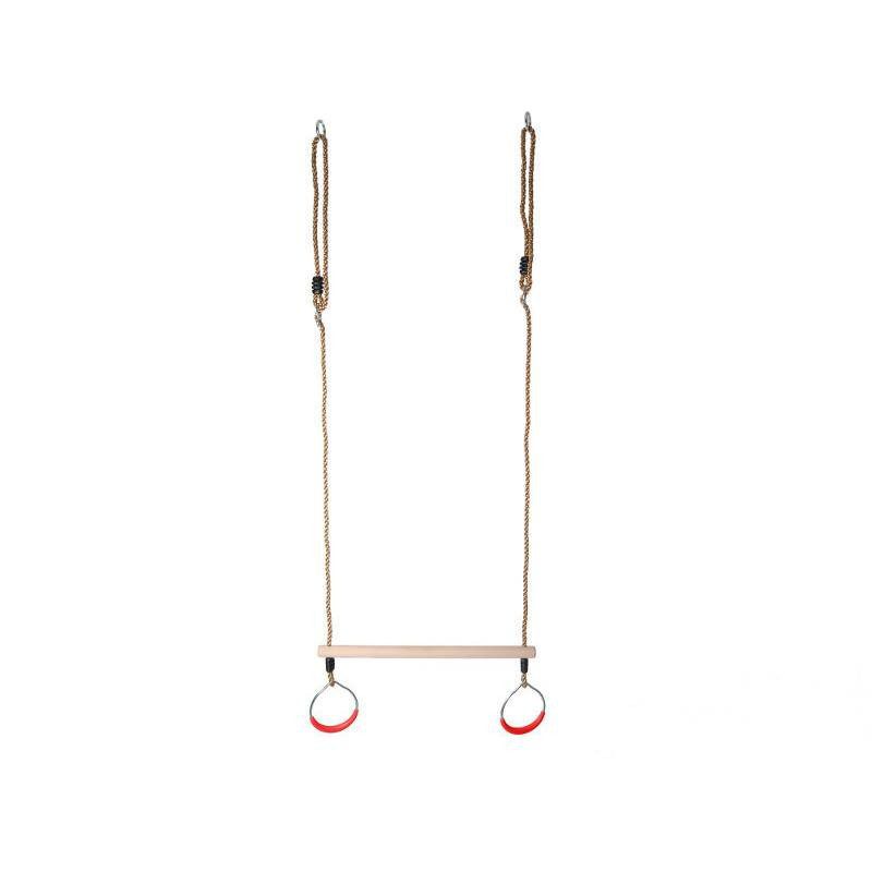Medinė trapecija su metaliniais gimnastikos žiedais – tai puikus ir nepakeičiamas žaidimo elementas, kuris ne tik papildys vaikų žaidimų aikštelę, bet ir suteiks jiems galimybę lavinti pusiausvyrą, koordinaciją bei fizinę ištvermę. Šis įrenginys yra funkcionalus ir saugus, nes plastiku dengti metaliniai žiedai neleidžia rankoms slysti, užtikrinant gerą sukibimą ir didesnį saugumą net intensyviai naudojant. Trapecija yra idealus pasirinkimas tiek vaikams, tiek paaugliams, kurie nori išbandyti savo jėgas ir išmokti naujų gimnastikos įgūdžių.