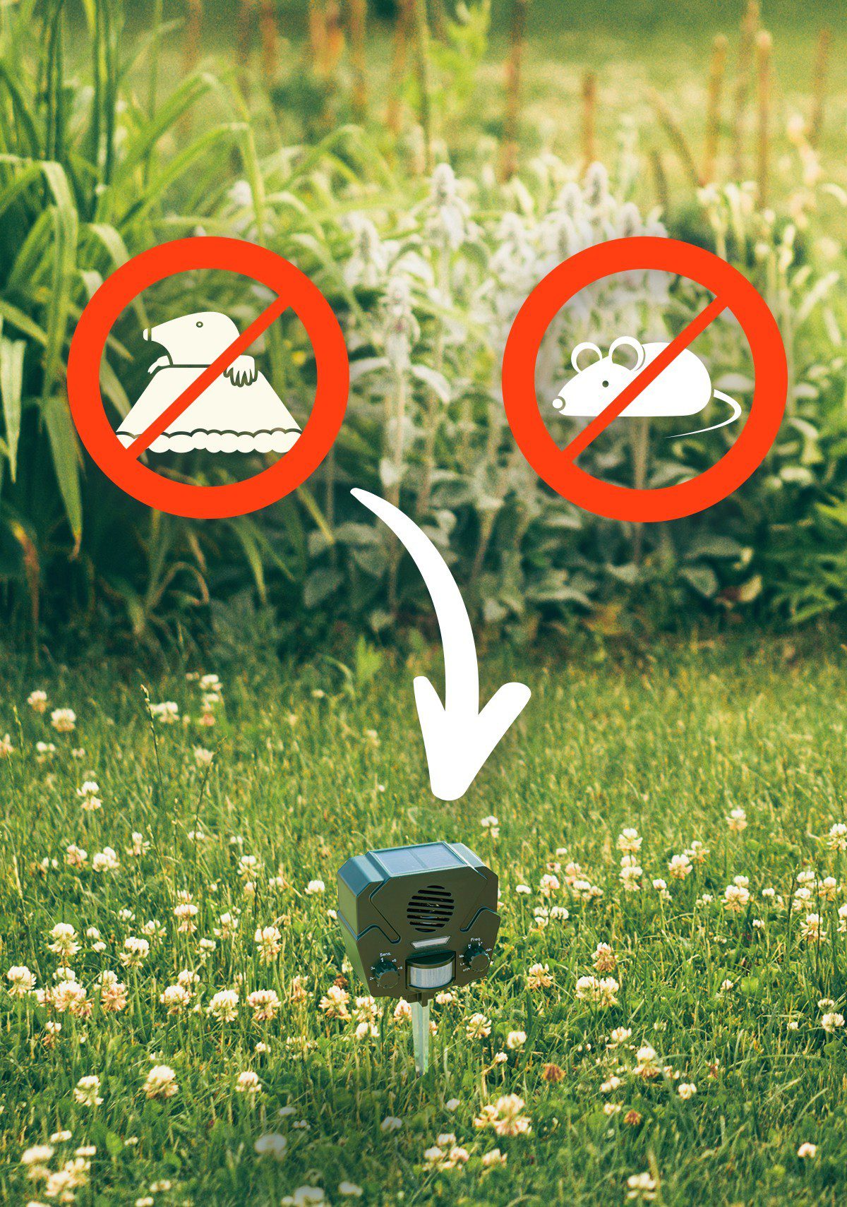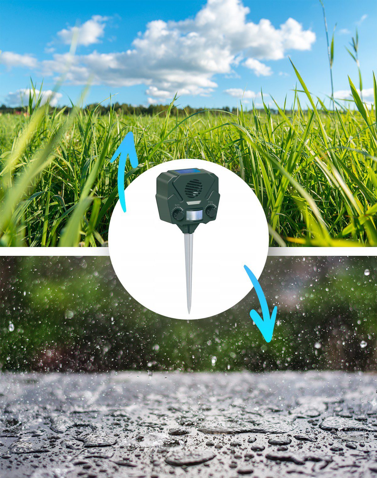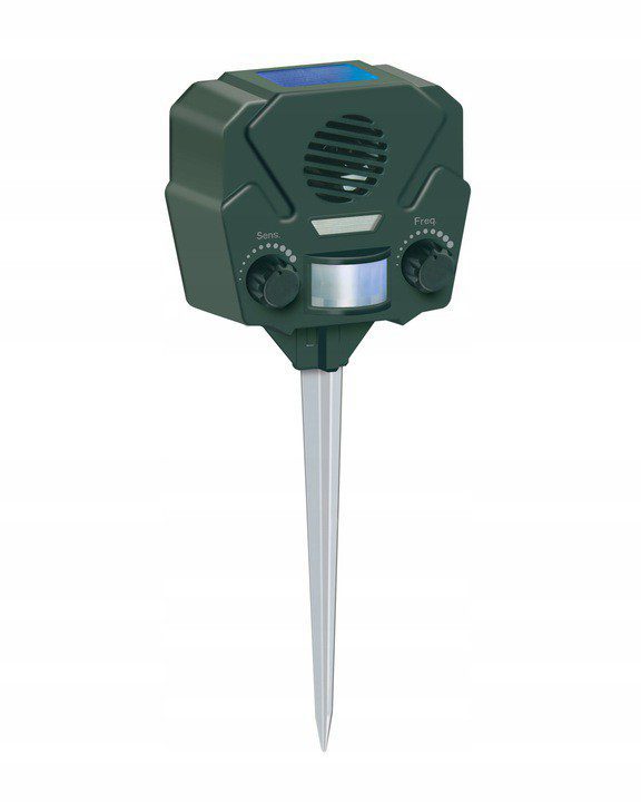 Aplinkai bei gyvūnams nekenksmingas ultragarsinis repelentas, padeda apsisaugoti nuo nepageidaujamų gyvūnų. Ultragarso sleidžiami garsai labai dirgina gyvūnus, dėl to jie vengia zonos, kurioje yra šis prietaisas. Ši ultragarsinė gyvūnų atbaidymo priemonė naudoja saulės energiją bei turi papildomą mirksintį šviesos diodą.