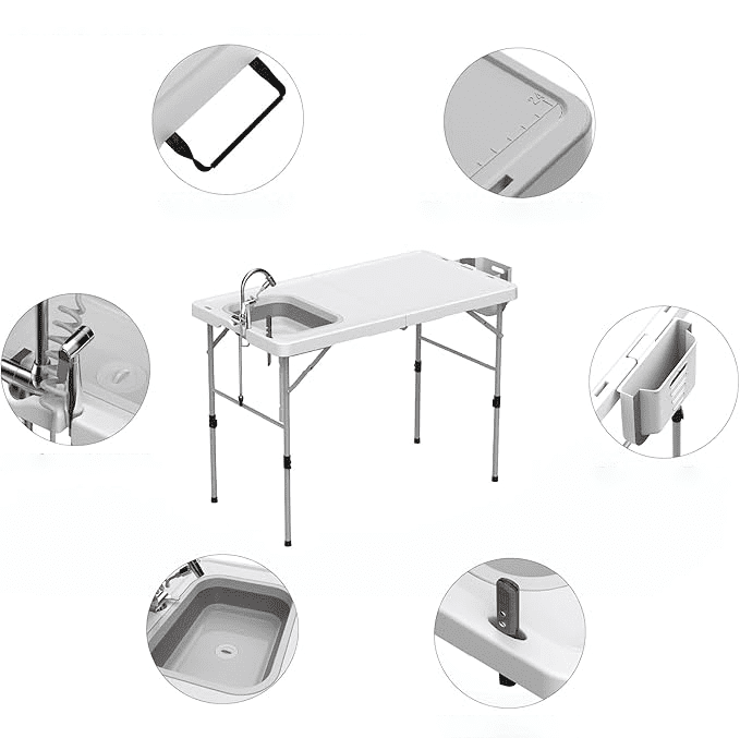 Kai reikia praktiško sprendimo lauko darbams – šis universalus sulankstomas stalas tampa nepakeičiamu pagalbininku. Tai idealus pasirinkimas tiek sodo ar sodybos darbams, tiek žvejybos, stovyklavimo ar iškylų metu. Patogus paviršius, tvirtas metalinis rėmas ir įmontuotas čiaupas leidžia tvarkyti daržoves, valyti žuvį, mėsą ar plauti indus tiesiog lauke – švariai, patogiai ir be rūpesčių.