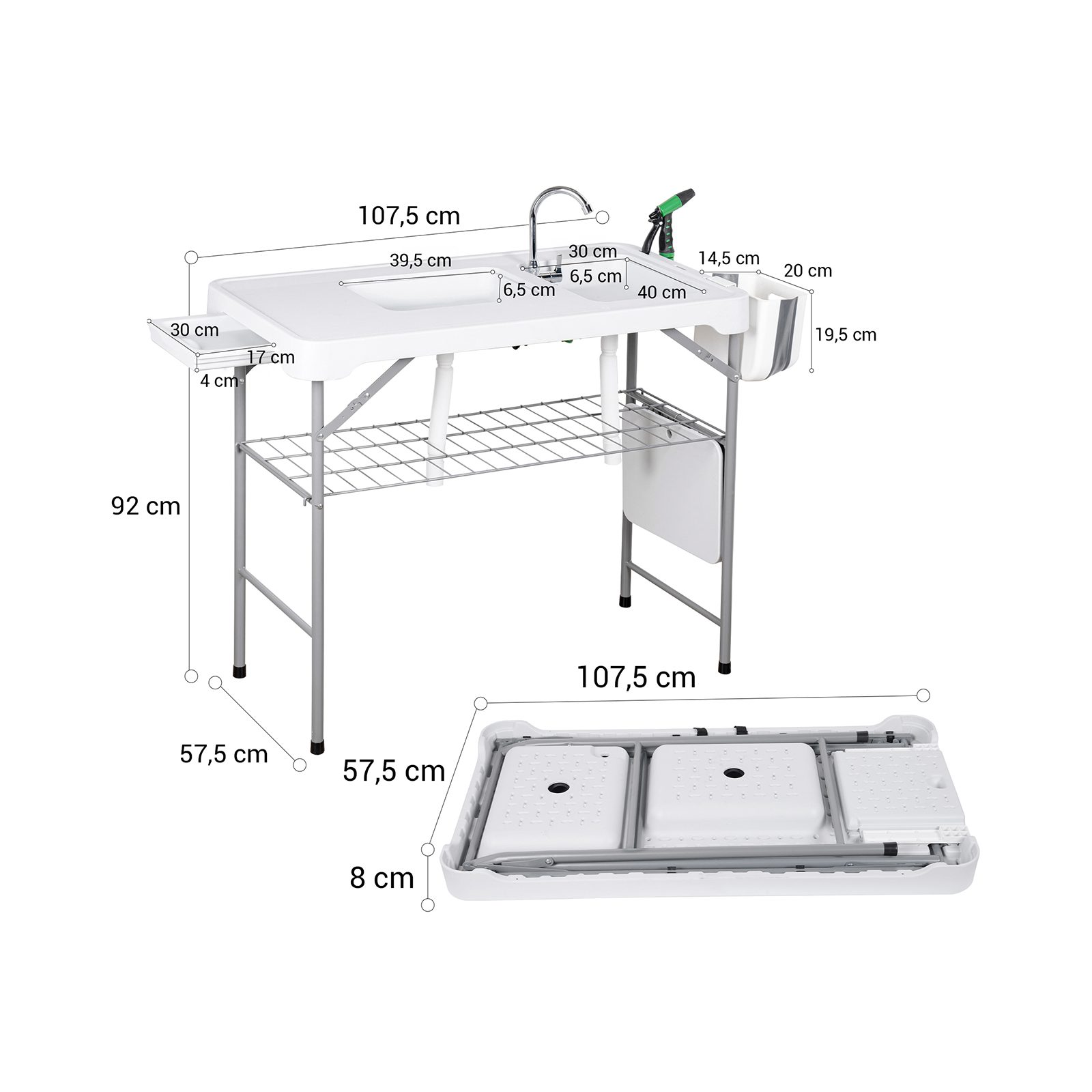 Kai reikia praktiško sprendimo lauko darbams – šis universalus sulankstomas stalas tampa nepakeičiamu pagalbininku. Tai idealus pasirinkimas tiek sodo ar sodybos darbams, tiek žvejybos, stovyklavimo ar iškylų metu. Patogus paviršius, tvirtas metalinis rėmas ir įmontuotas čiaupas leidžia tvarkyti daržoves, valyti žuvį, mėsą ar plauti indus tiesiog lauke – švariai, patogiai ir be rūpesčių.