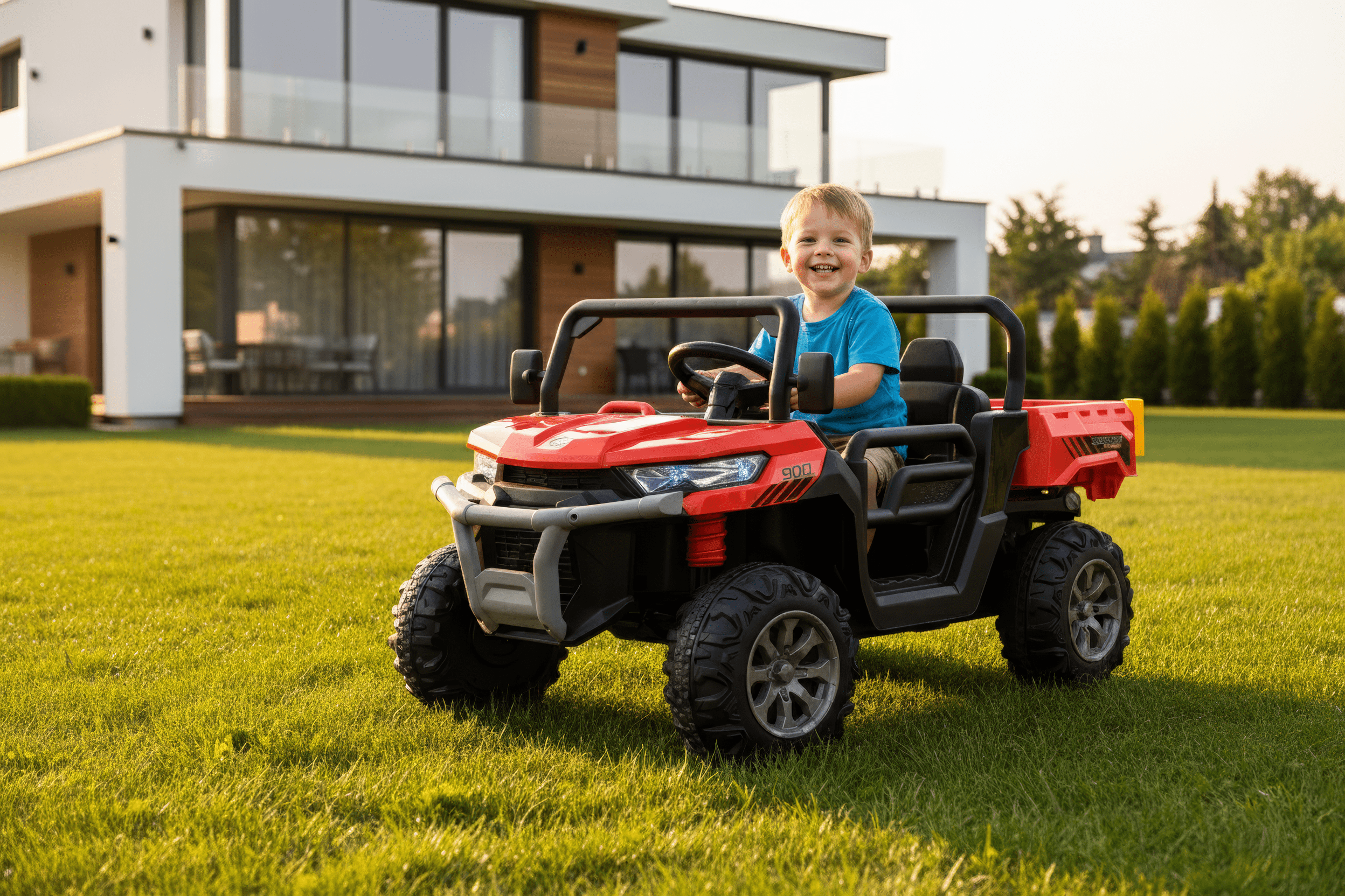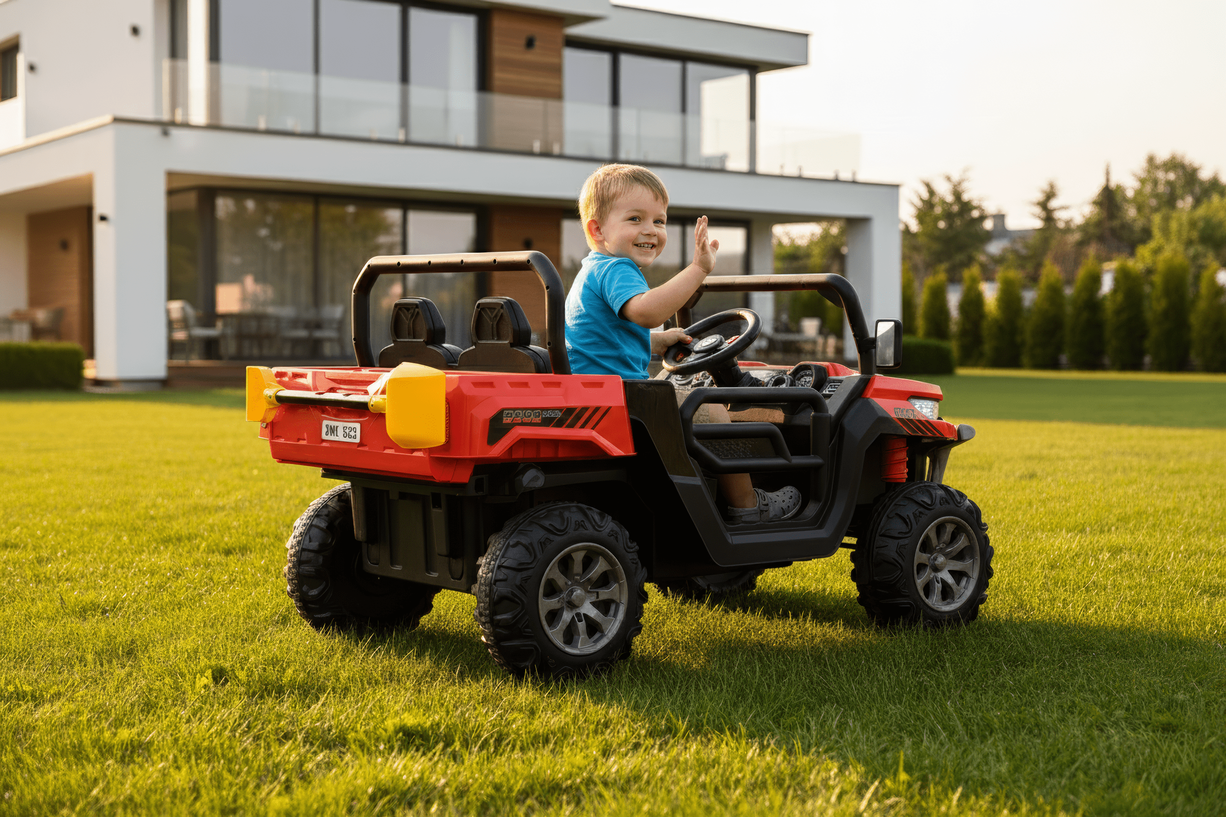 - Dvigubas valdymas – rankinis ir nuotolinis (2.4G R/C) – tėvai gali valdyti transporto priemonę nuotoliniu pulteliu, o vaikui paaugus – leisti jam vairuoti savarankiškai. Tai suteikia saugumą ir lankstumą.