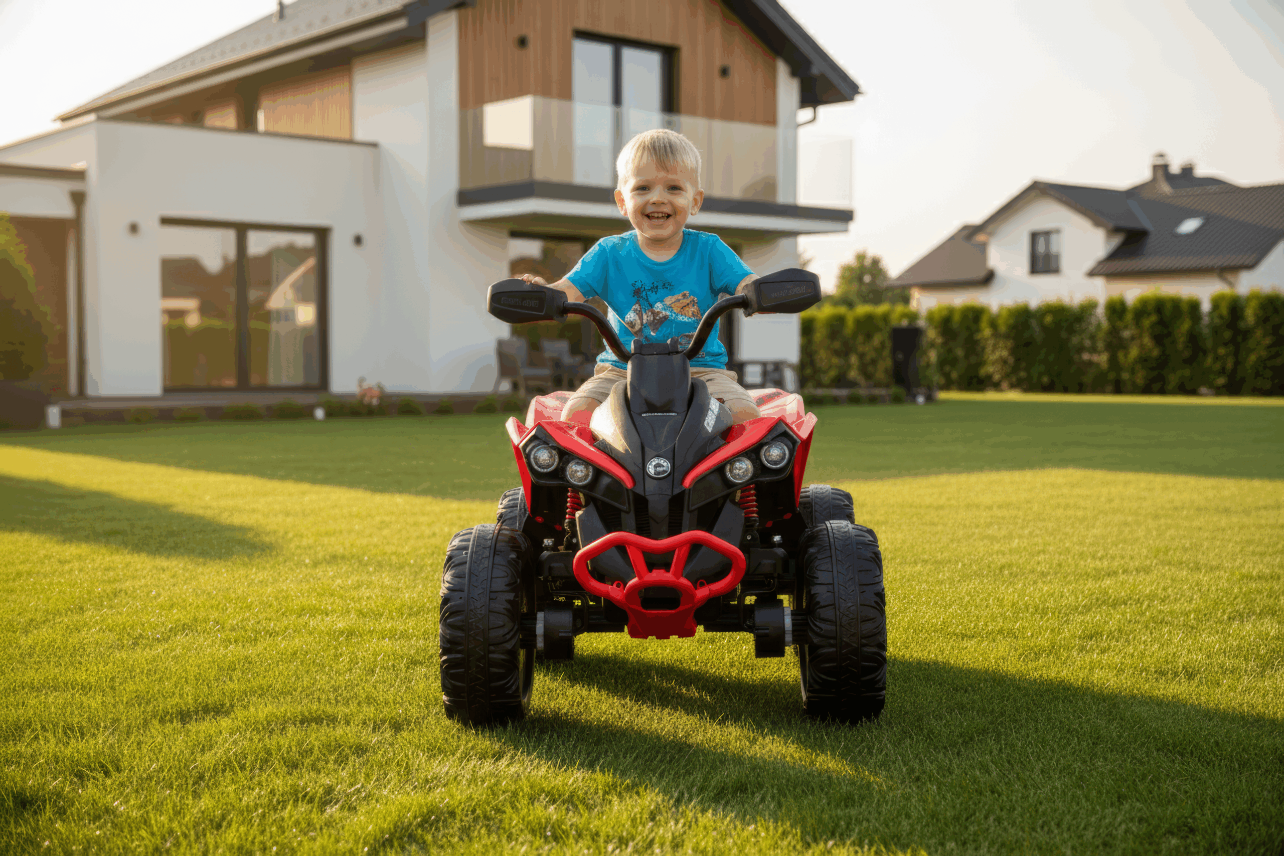 - Dvigubas valdymas – rankinis ir nuotolinis (R/C) – tėvai gali valdyti automobilį nuotoliniu pulteliu, o vaikui paaugus – leisti jam vairuoti savarankiškai. Tai suteikia saugumą ir lankstumą.
