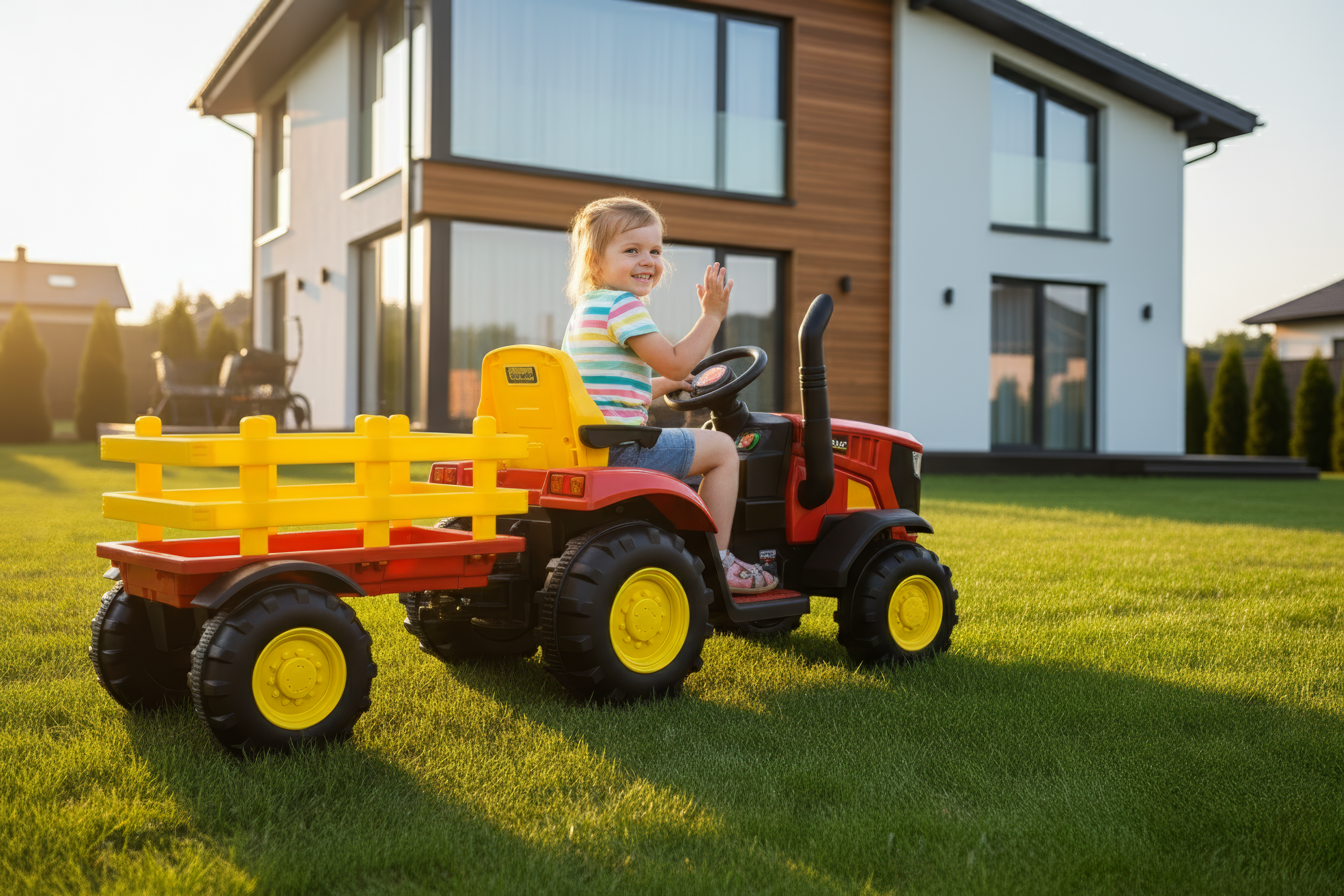 - Priekaba – papildoma erdvė žaislams ar kitam kroviniui leidžia vaikui žaisti dar kūrybiškiau.