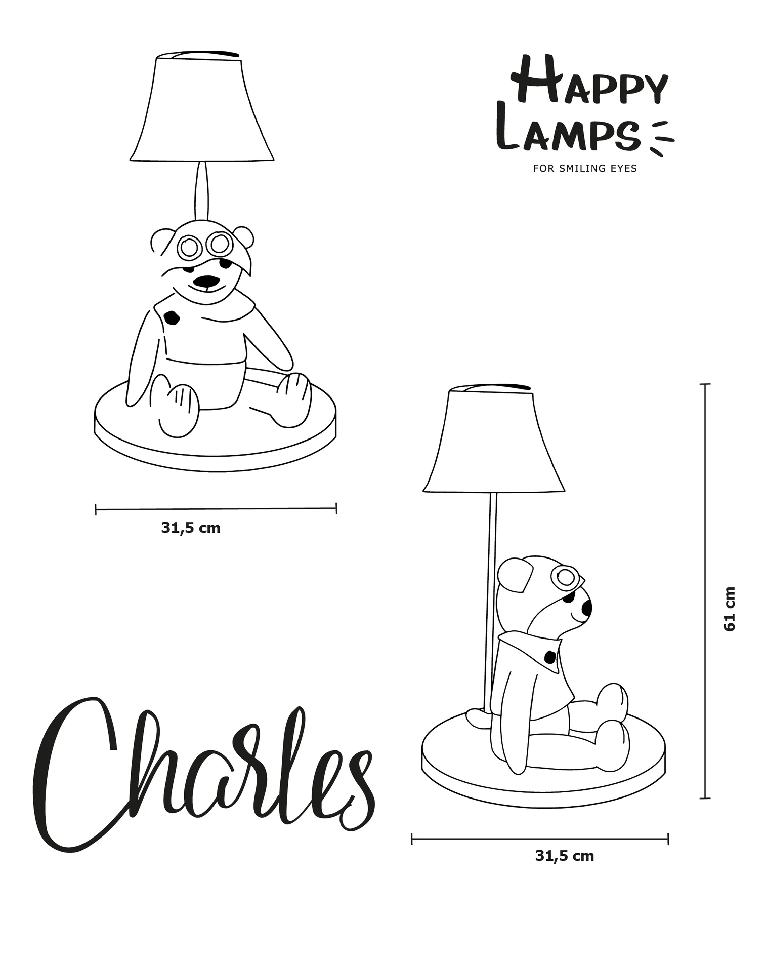 Nuotaikingas stalinis šviestuvas „Meškutis Čarlis“ turi savo istoriją bei charakterį. Žavios išvaizdos Čarlis spinduliuoja tikro piloto pasitikėjimu. Jis ne tik labai mielas, bet ir labai drąsus meškutis, kuris spinduliuoja tik pozityvią energiją, tad leiskitės būti įkvėpti Čarlio pozityvumo! Štai kodėl Čarlis yra toks ypatingas.