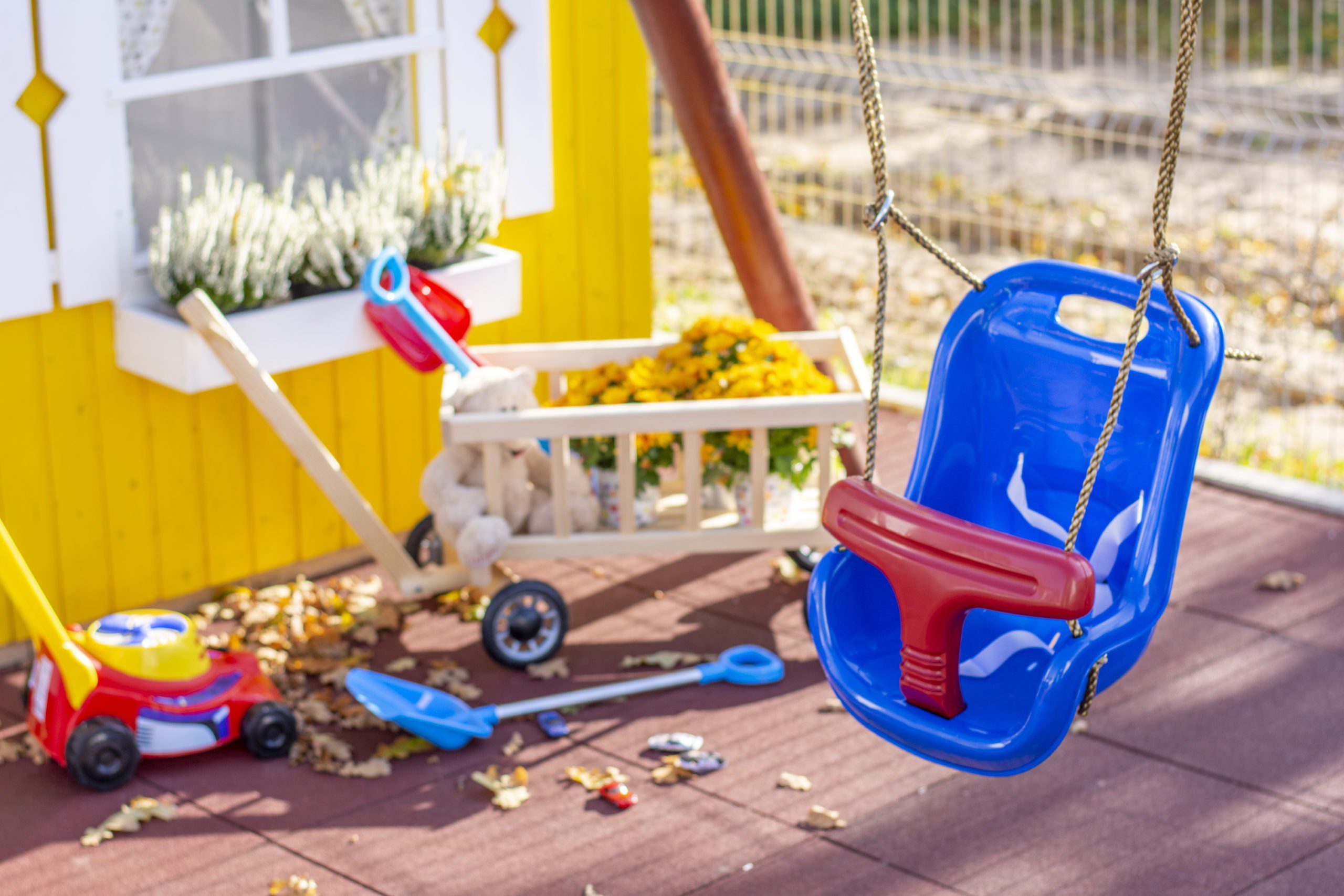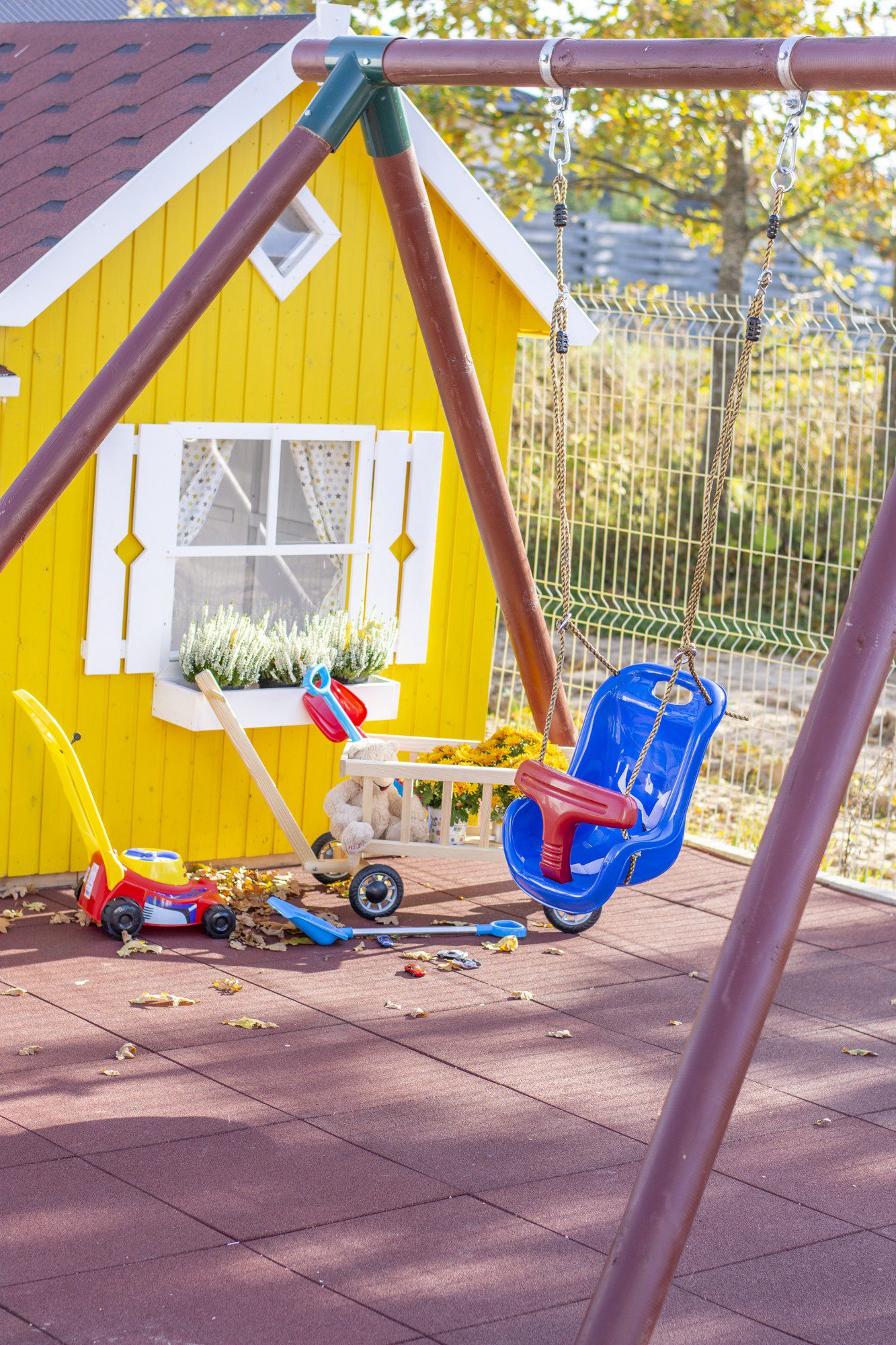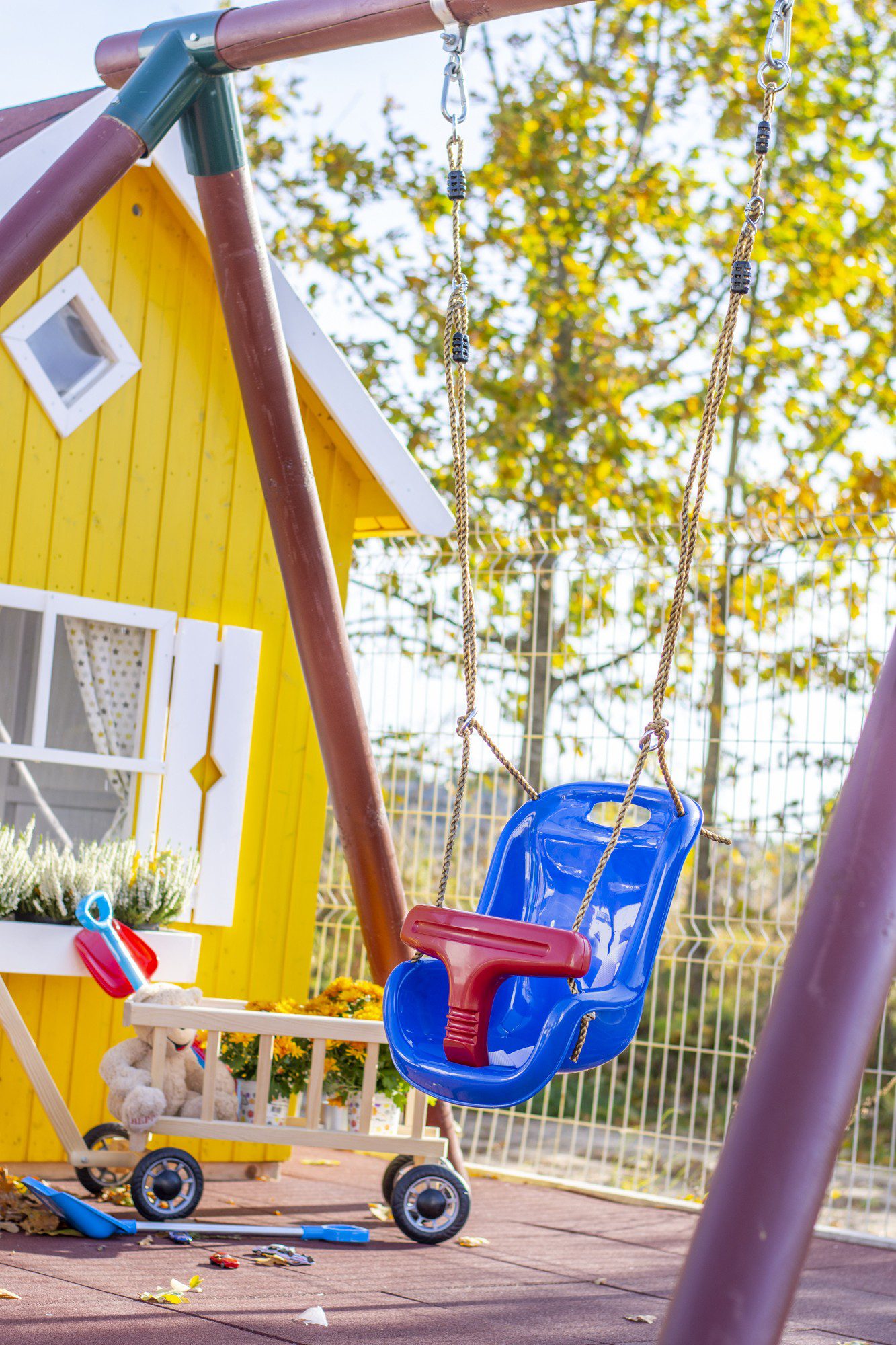 Vaikiškos sūpynės su apsauga, mėlynos su raudonu