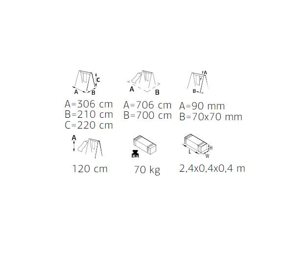 | Pakuotės išmatavimai | 220 × 50 × 30 cm |