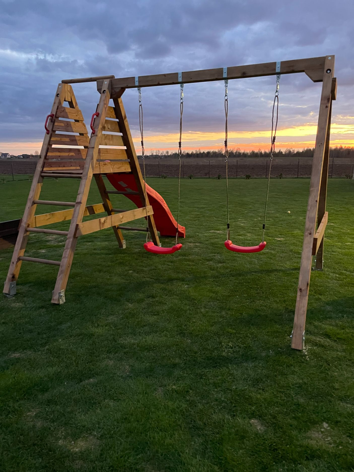PASTABA! Žaidimų aikštelės pristatomos nesurinktos ir nenudažytos. Supynių spalva gali skirtis nuo matomų nuotraukoje.