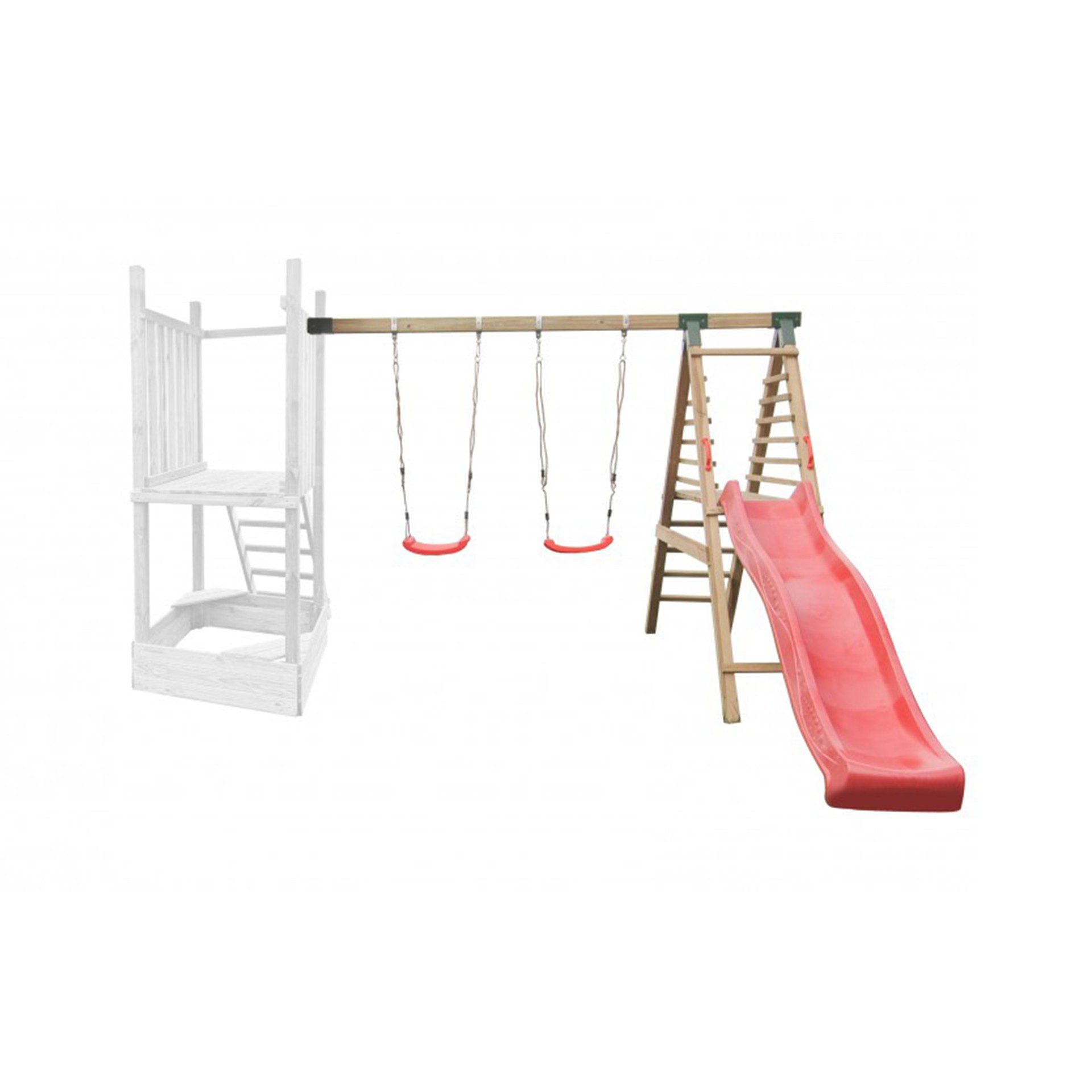 PASTABA! Žaidimų aikštelės pristatomos nesurinktos ir nenudažytos. Supynių spalva gali skirtis nuo matomų nuotraukoje.