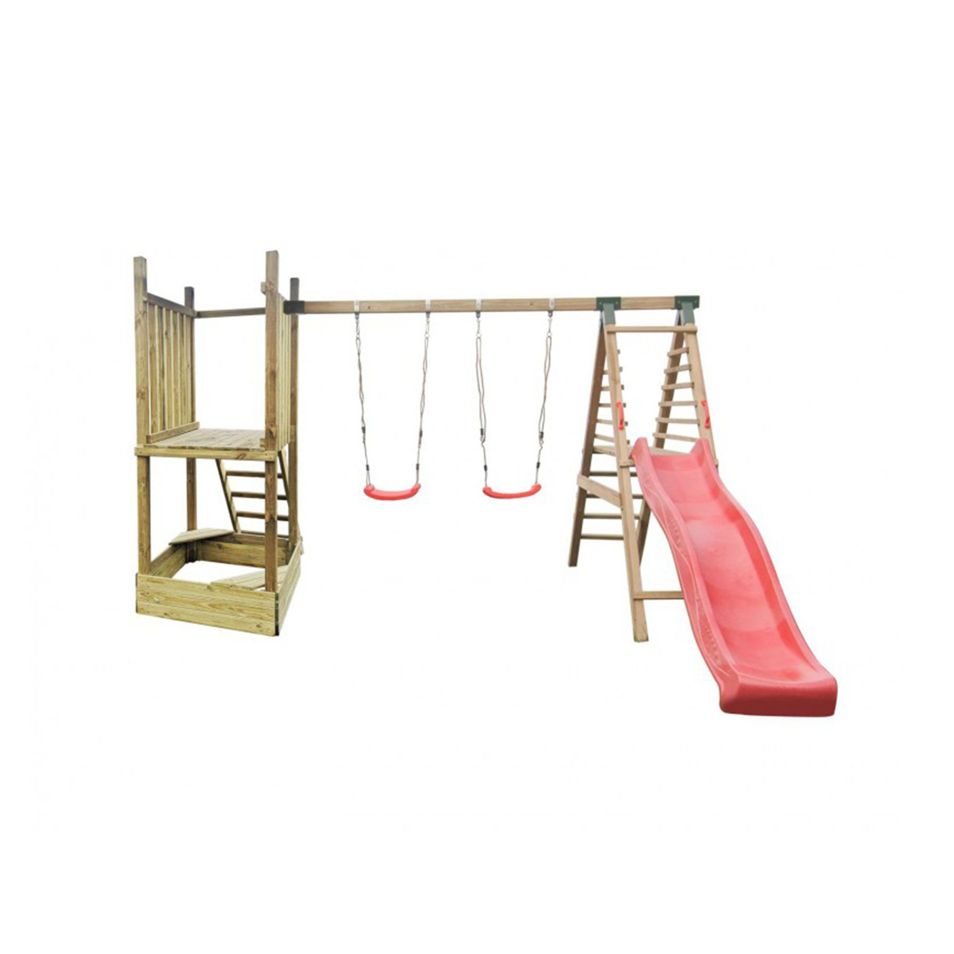 Šioje žaidimų aikštelėje yra numatyta vieta smėliadėžei, kurią galėsite pripildyti itin kokybišku, sertifikuotu smėliu, skirtu vaikų smėlio dėžėms!