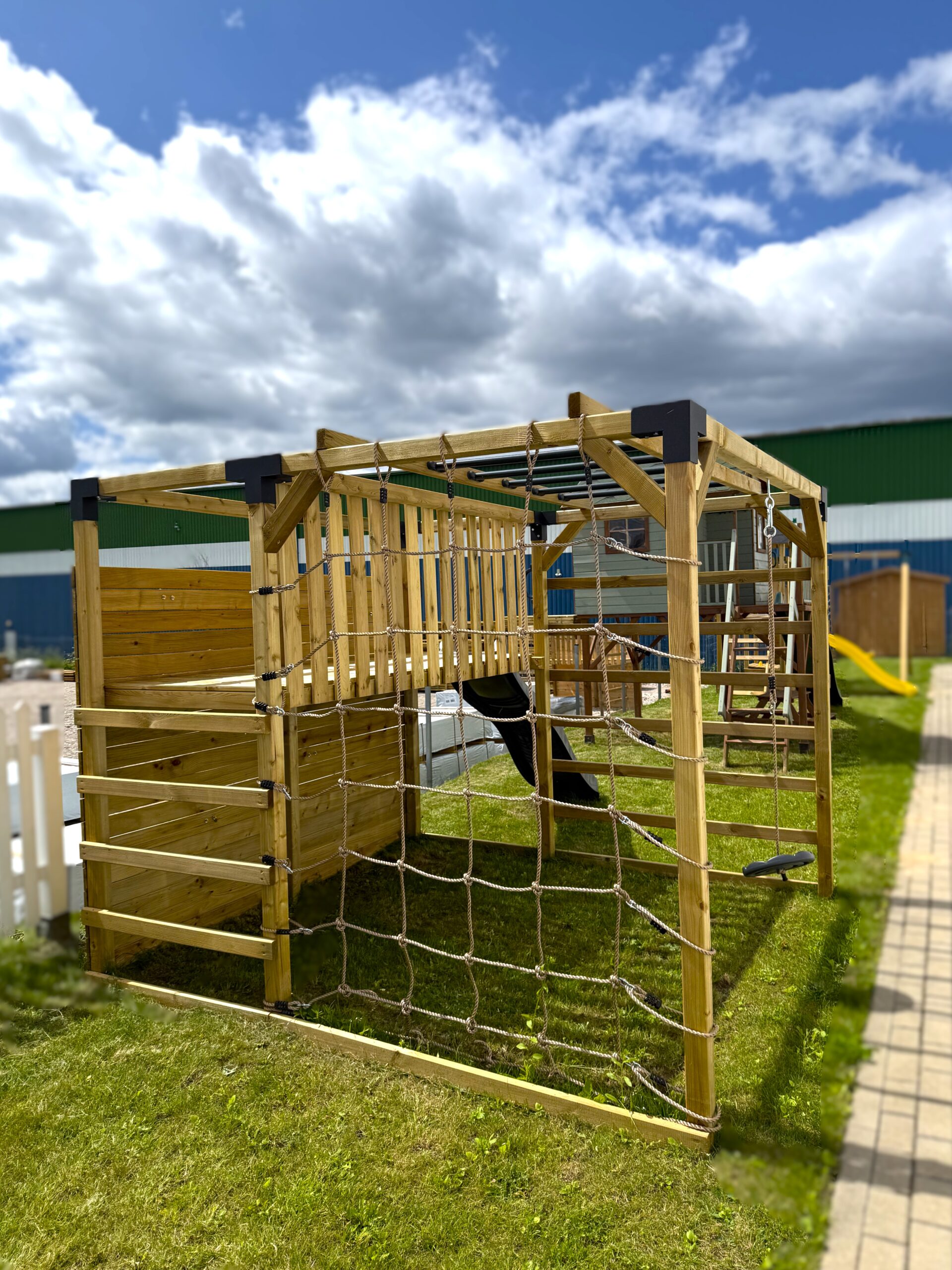 Išskirtinė, kubo formos vaikų žaidimų aikštelė „Tvirtovė“ padės sukurti įsimintinas akimirkas Jūsų mažiesiems, savo kieme! Unikali ir daugiafunkcinė žaidimų erdvė sukurta aktyviam ir įdomiam jūsų vaikų laisvalaikiui gryname ore. Šio stiliaus medinės vaikų žaidimų aikštelės itin populiarios dėl savo universalumo bei puikaus dizaino! Komplektacijoje nėra čiuožyklos, esant poreikiui, rekomenduojame papildomai įsigyti 220 cm ilgio čiuožyklą ir/arba laipiojo sienelę su 5 kybiais.