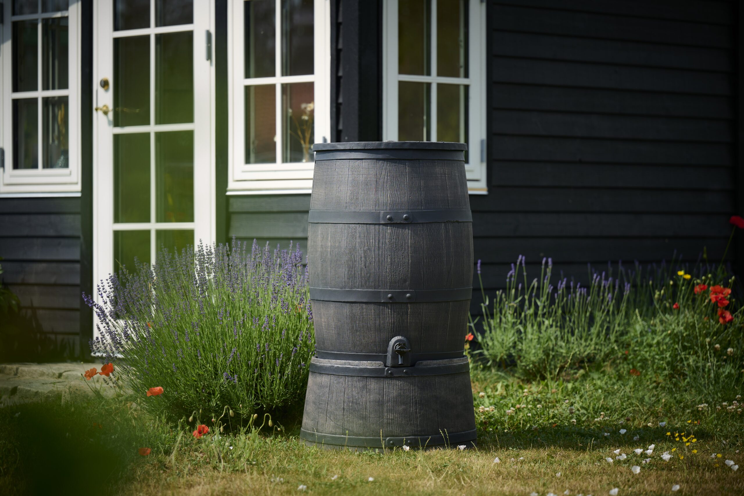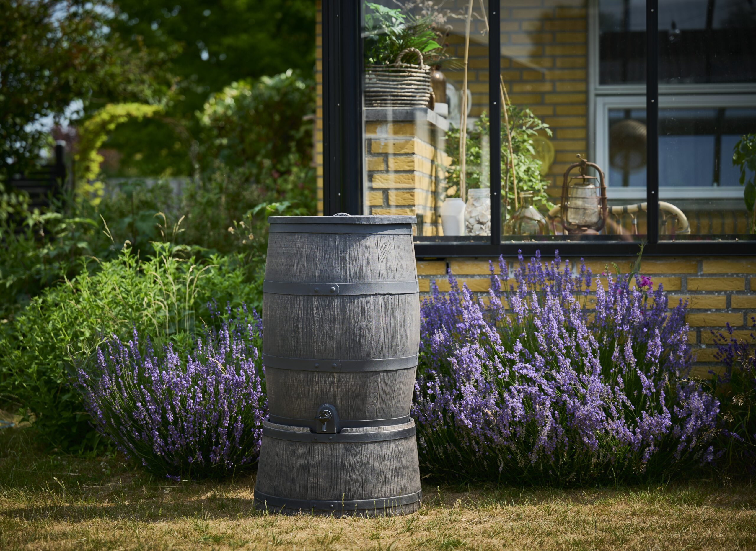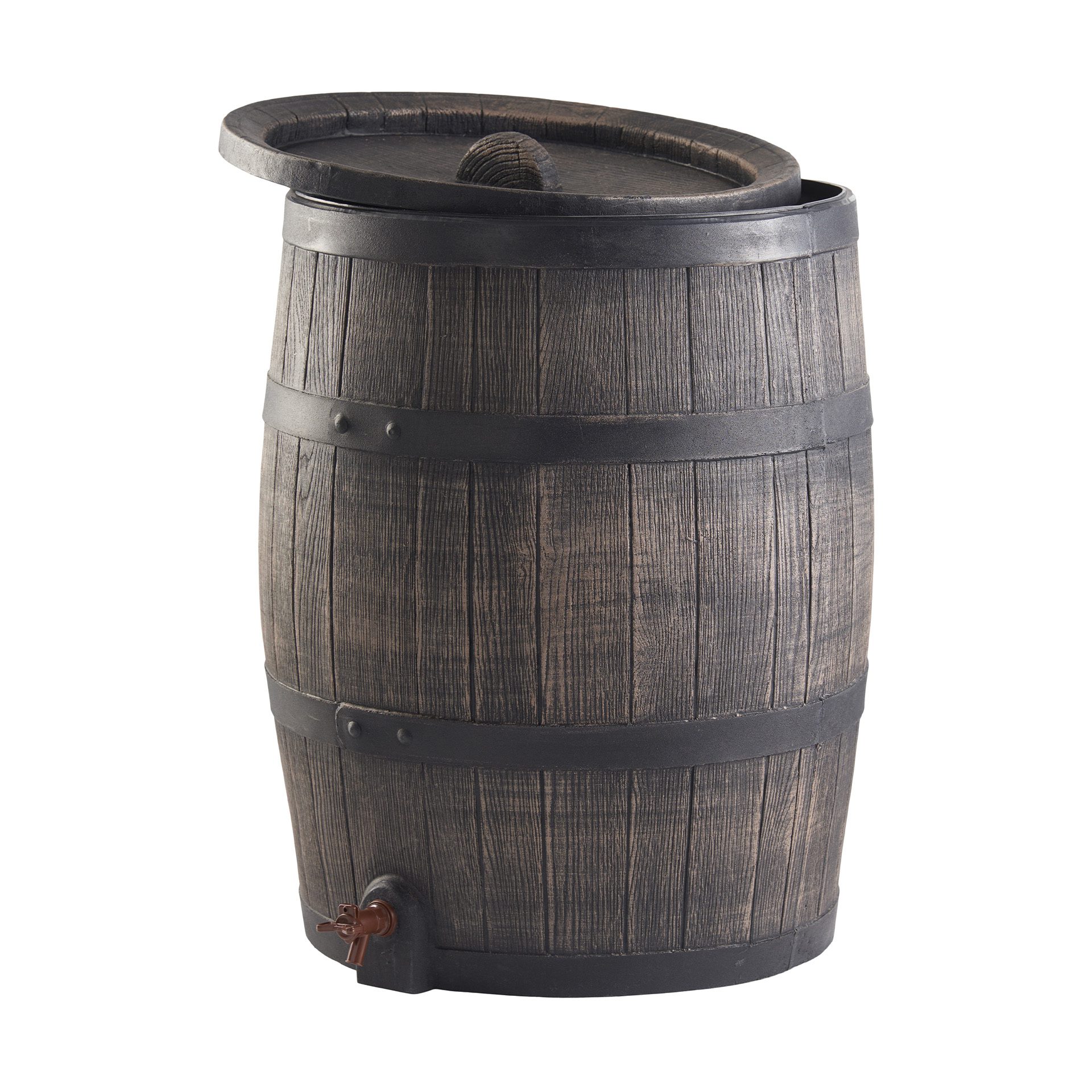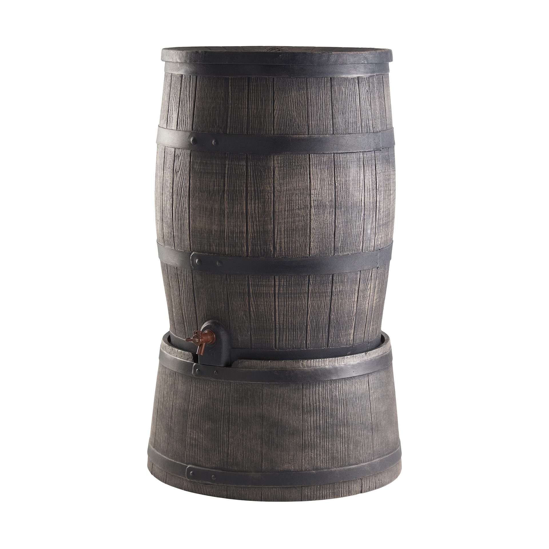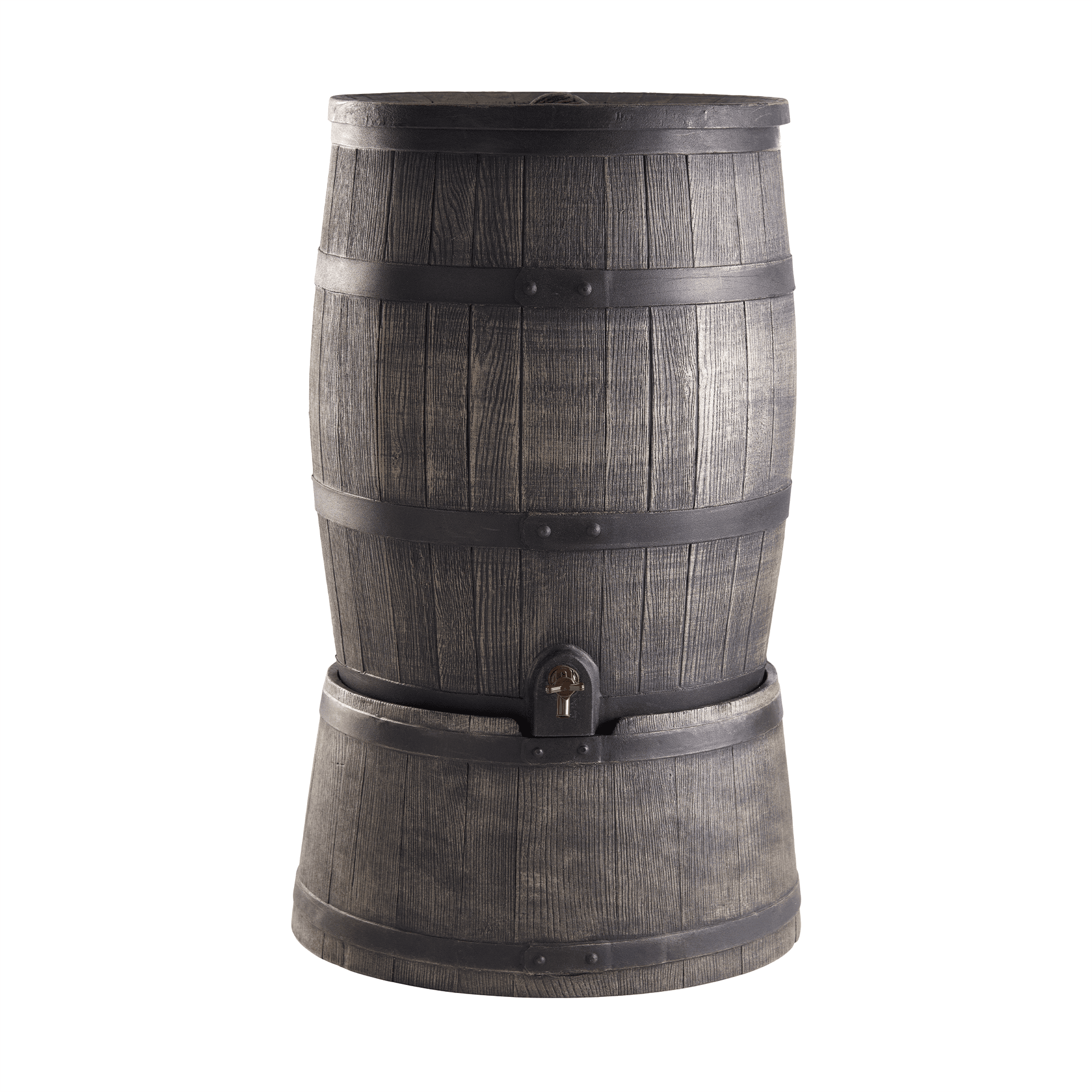 Šis 240 l vandens rezervuaras yra pagamintas iš plastiko, todėl yra ilgaamžis bei patvarus. Daili medienos imitacija ant vandens rezervuaro leidžia jam puikiai įsilieti į Jūsų sodo ar kiemo erdvę.