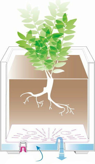 Vazono apačioje integruotas vandens rezervuaras, palaikys tiesioginį vandens tiekimą ir apsaugos augalą nuo perdžiūvimo. Tai tarsi automatinė laistymo sistema, aprūpinanti augalus reikiamu vandens kiekiu. Vandens rezervuare telpa 1,5l vandens. Susikaupus vandens pertekliui, vandenį galėsite lengvai pašalinti ištraukus kištuką esantį vazono dugne.